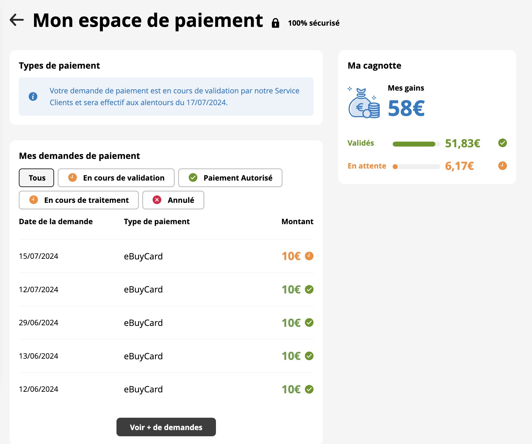 PS : cette Cagnotte ne représente pas tous les gains que j’ai fait avec eBuyClub.